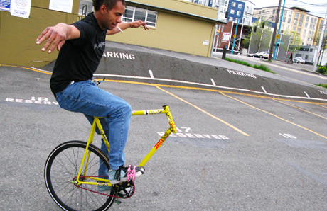 Now doing a wheelie without a front wheel and still maintaining balance and riding through traffic is quite simply breathtaking as the video below shows. It shows a Chinese cyclist wheelieing down the road forkless in quite a bit of traffic.