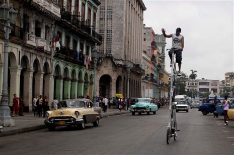 There are tall bikes than there are tall bikes. The bike of Felix Guirola (see the photo below) is 13 feet (4 metres) tall. Felix and his bike have become quite the regular celebrities in the Cuban capital Havana where Felix goes on a daily ride on the streets. To get on the bike, other people need to hold up the bike while he scrambles up to the top. If he has to stop riding, he has to lower himself down while the bike’s still in motion and grab the frame before it topples when he gets to the ground. Felix has a bit of history of building tall bikes and plans to build a bike that will challenge the current world’s tallest rideable bicycle - a 5.55-metre tall bike made and ridden by Canadian Terry Goertzen.